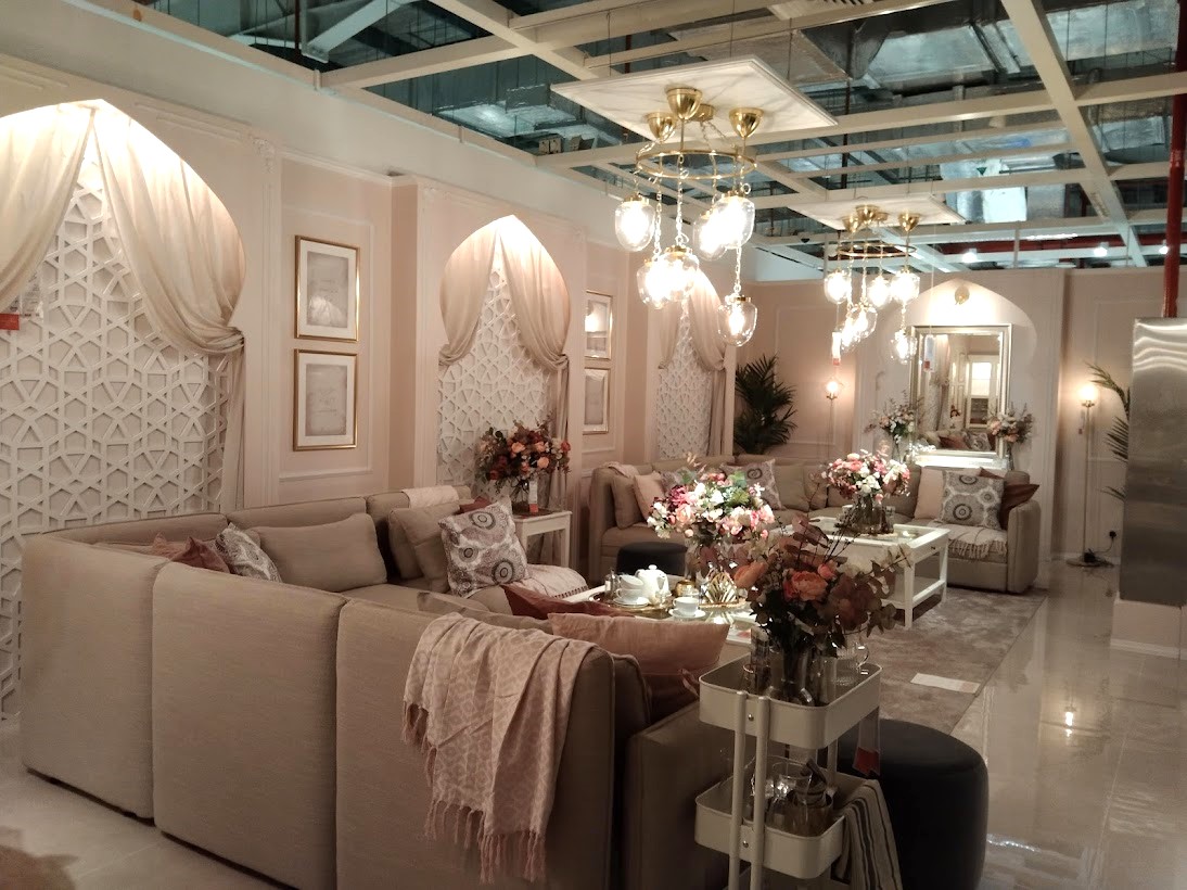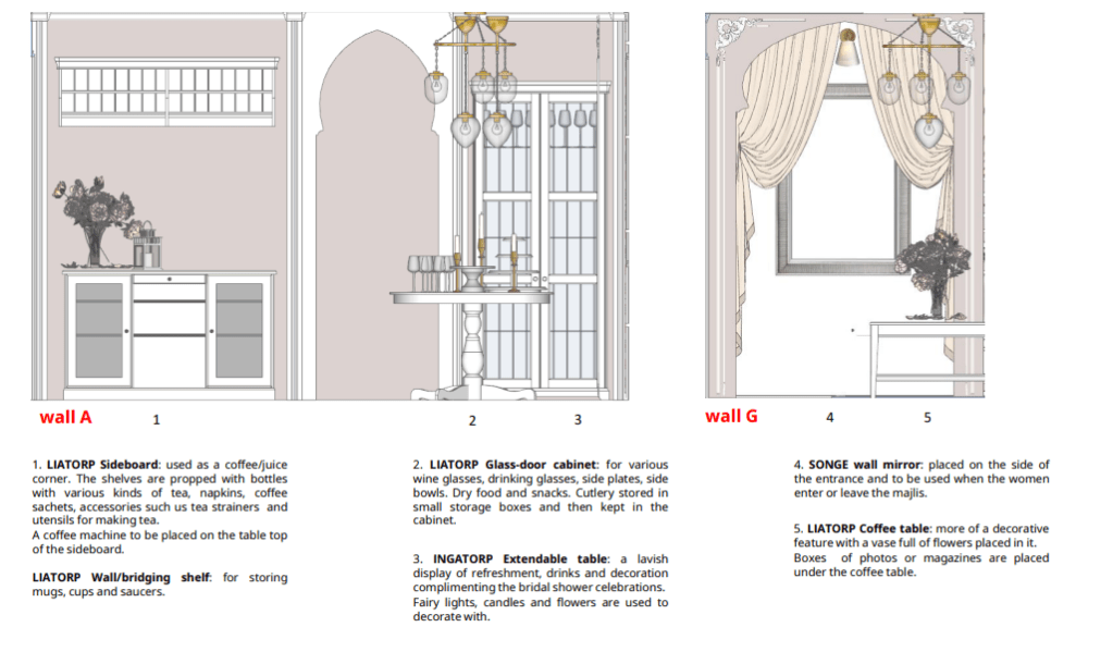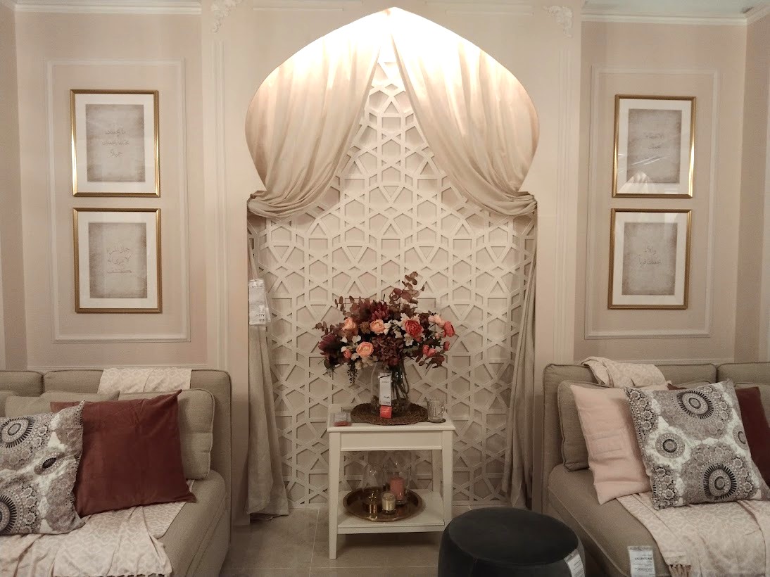 * Fatma Ghanem, Fufi / alohadecorliving.com / women’s majlis, algedra.ae / pink marrakech poster, desenio.com / IKEA.qa