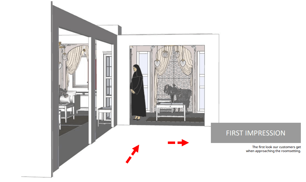 This majlis was created to fit the glamorous and luxurious lifestyle of a young Qatari woman. The space is used to host gatherings and tea parties for her friends and family.