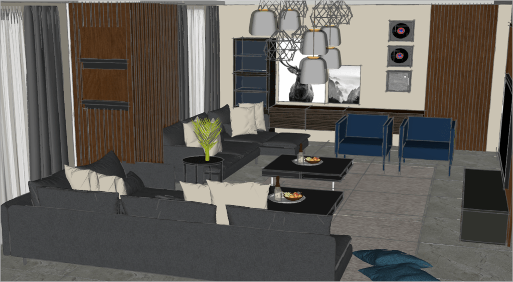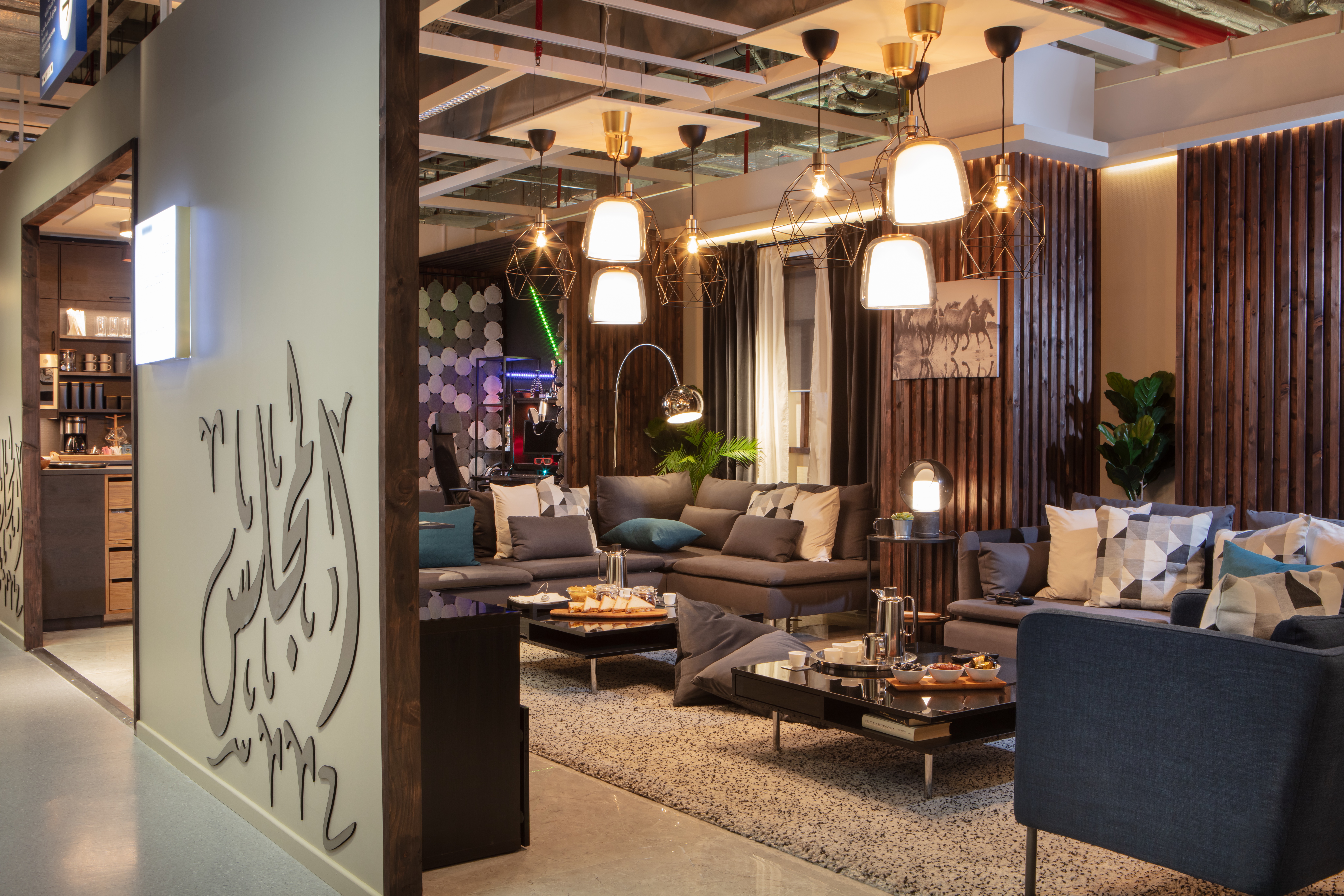 Typically, a space like this would be styled very traditionally, however, we decided to create a contemporary and modern male majlis with activities other than sitting and relaxing, to take place.