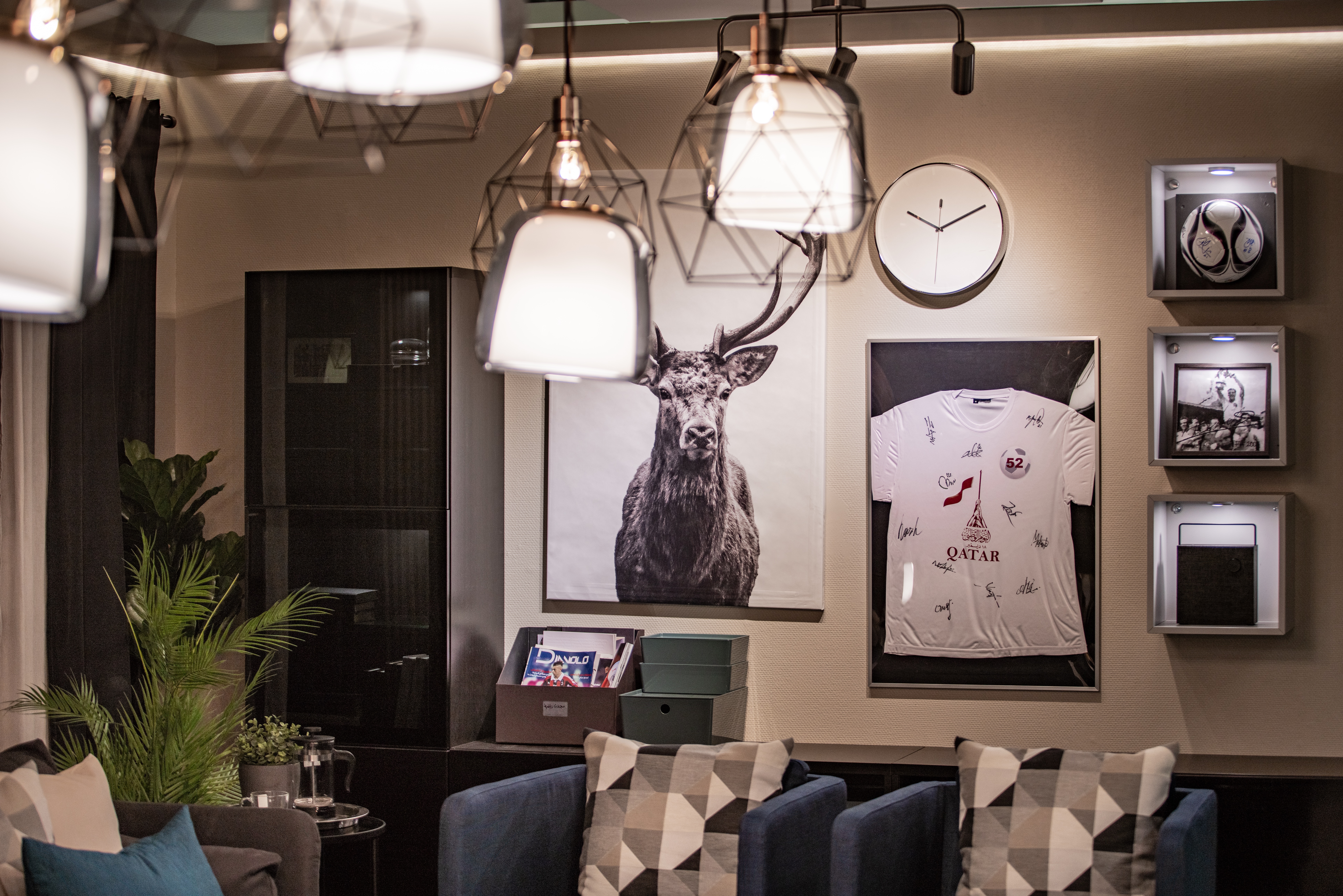 The Majlis was designed to cater for the needs of a 28 year old Qatari man, Ahmad, who usually meets with his business associates, watches soccer matches and plays video games.
