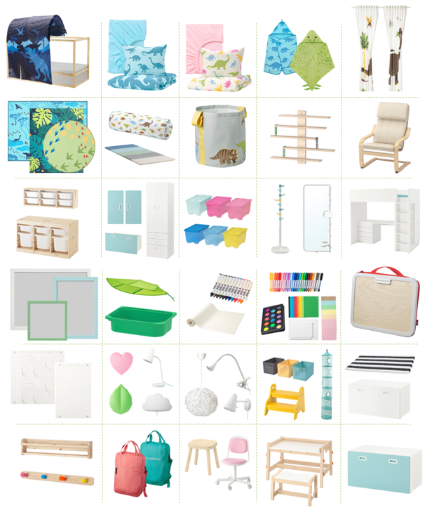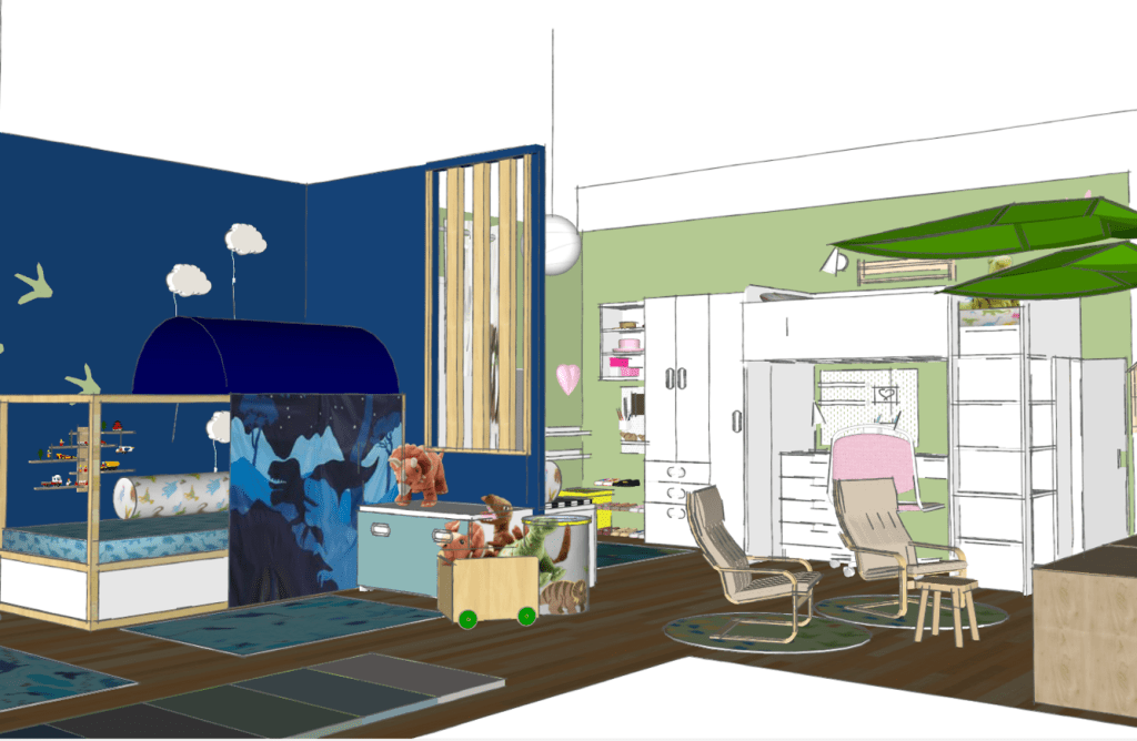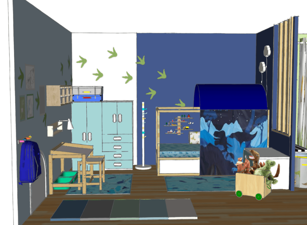 The bedroom was designed around the JATTELIK collection, IKEA’s dinosaur series, to keep the little one’s imaginations alive and learn through play.
