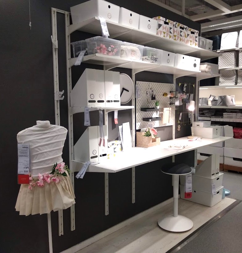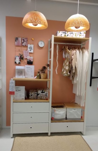 Sections in the store, where accessories are grouped with a main piece(s) of furniture to cater to a certain function and solution. Also, a strategy to educate customers on how to store and organize.